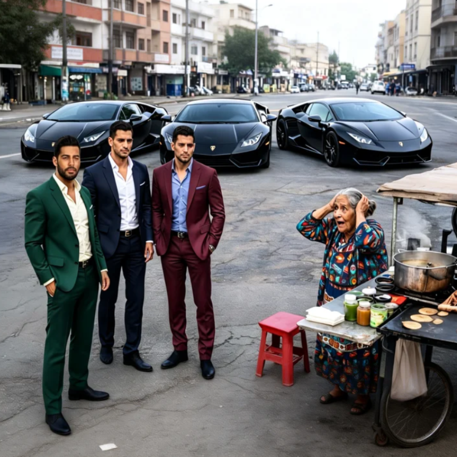 A door opened, then another, then another. Three men went down almost at the same time time, all high, all with gifts, all with that quiet elegance that does not need to scream. They weren’t kids from the neighborhood, they seemed from another world. Doña Elenita looked at them and He felt a strange jolt, like when something known hides within impossible.