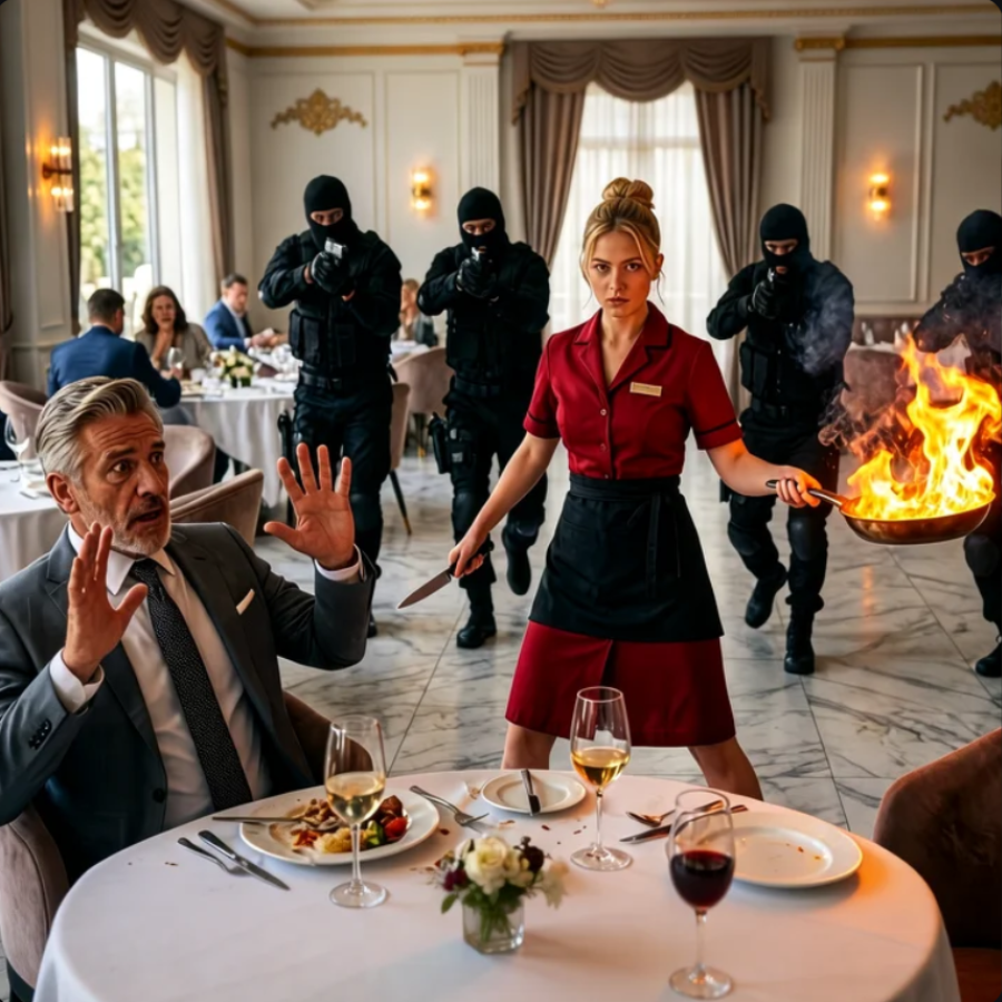 They had their backs to the wall. His feet were flat on the ground, ready to move. They were blocking one of the exits main. Sara’s heart began to beat faster. His hands stood firm while wearing a appetizer tray to another table, but His mind was racing. This was a coordinated professional operation. No They were ordinary criminals.