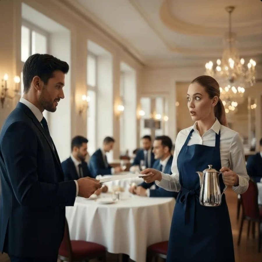 They did not sit at the tables, They didn’t ask for food, They just stood there waiting for their presence, transforming the humble local into something completely different. The breakfast customers looked confused and a little scared. Valeria’s manager, Tomás, left the kitchen with a pale face. What’s happening? Who are all these people? Then the crowd parted and Alejandro Torres passed through the middle without look nothing like the broken man of the night before He was wearing an impeccable navy blue suit,