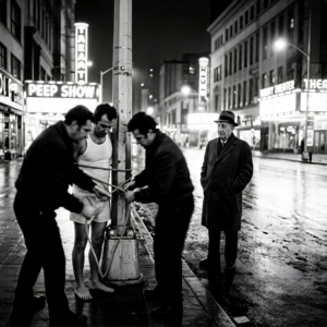 Fear does that sometimes. It doesn’t make you run. It freezes you solid. Your brain screams move, but your body won’t listen. They walked him out like he was their drunk friend, stumbling home from a bar. One man on each arm. Nino walking ahead, clearing a path through the scattered late night crowd. Nobody looked twice. This was New York.