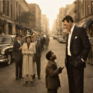 The same stillness he brought to his most intense scenes. The pause before something real was about to happen. Then he spoke. His voice was softer than Sammy expected. Not the booming voice from the movies. Something more human. What is your name, son? Sammy swallowed hard. Samuel, sir. But people call me Sammy.