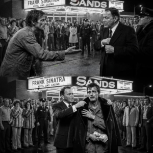 Thin, wearing a tattered army jacket, Vietnam veteran patch visible on the sleeve. He looked at Frank and asked a simple question. Sir, can you spare a dollar? I haven’t eaten today. What Frank did next stopped everyone on that sidewalk. Made his security freeze. Made the crowd go completely silent because Frank Sinatra didn’t just give him a dollar.