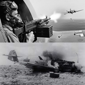 That gave him exactly 7 seconds before the German reached firing position. Donovan used all seven. He walked tracers directly into the lead BF 109’s flight path. The fighter couldn’t evade without breaking attack formation. The pilot held course. Fatal mistake. At 800 yd, Donovan’s rounds found metal. The fighter’s canopy shattered. The aircraft rolled inverted and fell.Five remaining.