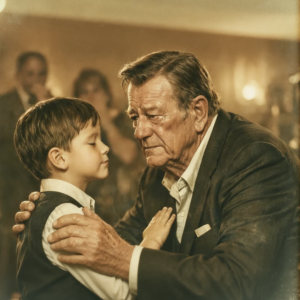 Wayne stood in the hallway outside the ballroom, back against the wall, breathing slowly. The organizer found him there 2 minutes later. Duke, you okay? We can skip your speech if. Where’s that boy? Wayne asked. Danny, he’s back at the table with bring him here. Just him. Duke, I don’t think.