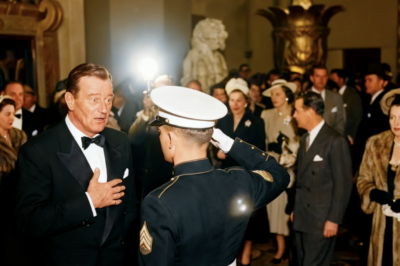 John Wayne Met A Real IWO JIMA Marine At His Movie Premiere—The Salute Changed Everything November 1949. A man in…