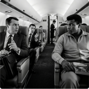 Ali wasn’t known because he demanded respect. He was known because he had earned it in arenas far bigger than that airplane. He had stood against champions, governments, critics, and entire systems. And he had done it with courage, principle, and sacrifice. Those stories followed himeverywhere. They walked into rooms before he did.