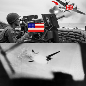 Climbing made them slower. Predictable. Battery C’s gun director tracked a bomber in the middle of the formation. Evans adjusted his aim. Fired. The shell burst 50 meters below the bomber’s belly. Close enough. The concussion wave hit the aircraft like a hammer. The Betty’s nose pitched down. The pilot fought for control. He didn’t get it.
