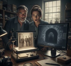 Pero algo no cuadraba. Si esto era evidencia del crimen, ¿por qué los perpetradores posarían tan despreocupadamente para un retrato formal? La contradicción carcomía a Jon mientras estudiaba cada detalle de la imagen. Examinando los márgenes de la fotografía con una lupa, Jon vio algo que inicialmente había pasado por alto. Un pequeño logotipo en relieve en la esquina inferior derecha.