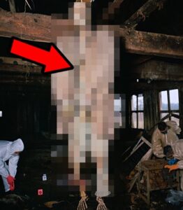 Al cabo de unos minutos, el perro se detuvo en la esquina más alejada de la habitación y comenzó a gemir mirando hacia arriba. El detective Palmer iluminó el techo con su linterna. Algo colgaba entre las vigas, envuelto en lona y cuerda. Los bomberos trajeron una escalera del camión. El sargento Thomas Craig subió con cuidado y examinó el bulto.