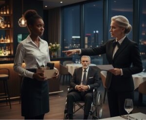 Esto va a ser divertido.” Ella sintió como se aceleraba su corazón, pero respiró hondo y mantuvo su compostura profesional. Ya no era la camarera vulnerable que dependía de un empleo precario. Ahora contaba con respaldo, capacitación y, sobre todo, confianza renovada. “Buenos días, señor. ¿Desea una mesa?”, preguntó ella con educación impecable, sin mostrar intimidación.