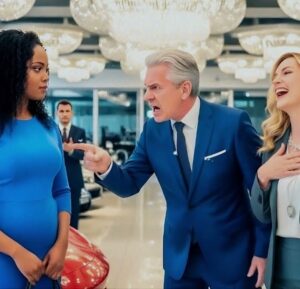 Ahora, dos clientes cerca de la entrada habían levantado los suyos, uno pretendiendo revisar mensajes mientras la cámara claramente apuntaba hacia la escena. El director notó, pero solo alimentó su arrogancia. “Graben todo lo que quieran”, se burló. No cambiará el hecho de que este salón de exhibición no entretiene fraudes. Escupió la palabra como un veredicto. Su voz resonando contra acero pulido y vidrio tintado. La mujer a su lado añadió su risa delgada y cruel.