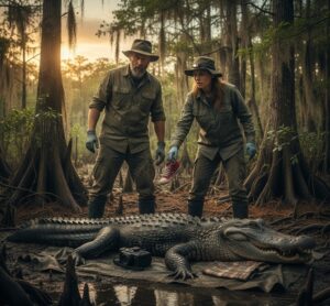 Despiece un caimán tan grande requería tiempo y experiencia. Harris comenzó por abrirle el vientre con un cuchillo afilado, desde la cola hasta la cabeza. Dentro del estómago, además del contenido habitual de espinas de pescado y caparazones de tortuga, encontró varios objetos metálicos.