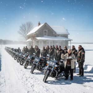 Hora de cerrar, voltear el letrero y admitir la derrota. Mañana llamaría al abogado, tal vez vería si podía llegar a algún tipo de plan de pagos, aunque sabía que era inútil. El banco había tenido suficiente paciencia. Estaba a punto de encender la luz cuando lo oyó. Un sordo estruendo que atravesó el viento aullante como un trueno. Al principio, pensó que podría ser una máquina quitanieves, pero el sonido era diferente, más profundo, más rítmico, como un latido de acero y cromo. Sarah pegó la cara a la ventana, entrecerrando los ojos a través de la nieve. Al principio, no vio nada más que blanco. Luego, lentamente, empezaron a surgir siluetas de la tormenta. Faros, muchos, y bajo las luces, las distintivas siluetas de motocicletas, grandes, Harley-Davidson, a juzgar por su aspecto. El estruendo se hacía más fuerte a medida que las motos se acercaban, con los motores acelerando contra el viento.