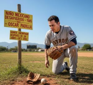 Lo apartó con cuidado, descubriendo una bolsa plástica parcialmente descompuesta. Dentro, un objeto inesperado, un guante de béisbol infantil, café deteriorado, pero aún reconocible, con costuras apenas desilachadas y un peso ligero como de cosa dormida durante años. se lo llevó al rostro y lo olió. Tierra, cuero viejo, algo que no supo nombrar, pero lo que lo detuvo fue lo que estaba grabado a fuego en la parte interna de la palma.