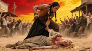 Nadie lo reconoció. Nadie lo notó. Tau, guerrero Apache, había vivido años en silencio. Cargaba con cicatrices propias, profundas, no siempre visibles. Una, en particular, gruesa y antigua, recorría su nuca susurro de hierro candente. Él conocía el dolor y conocía la injusticia. La multitud comenzó a dispersarse cuando el sherifff pasó por la plaza.