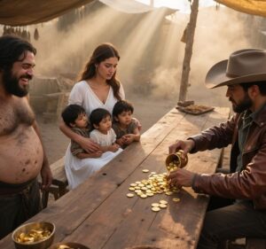 La golpearon por dar a luz a una niña hasta que un ranchero viudo con tres hijas dijo, “No llores, ahora ya somos seis.” Rancho perdido en las afueras de D Hollow, Arizona. Otoño de 1877. El viento silvaba entre los cactus como si arrastrara lamentos antiguos.