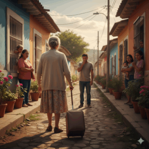 The neighbors were watching too — Doña Marta peering from behind her curtains, Mr. Roberto pretending to water his plants but not taking his eyes off her.