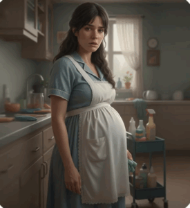I had been working for Mrs. Mendoza for eight and a half months. Eight and a half months of bending over with my belly pressed against my knees to sweep crumbs off marble floors, stretching to reach windows on the second floor, lugging buckets that felt heavier every week because I was heavier every week too.
