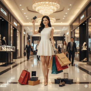 “Technically… YOU spent six thousand dollars,” I said, floating past him with bags.