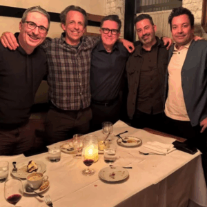 In a rare display of solidarity, Fallon, Kimmel, Oliver, and Meyers have all agreed to appear together on one stage this coming Monday night — a historic, unscripted broadcast insiders are already calling “the night late-night fights back.”