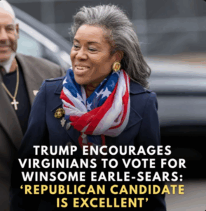WASHINGTON, D.C. — Former President Donald Trump is signaling his support for Virginia’s Republican gubernatorial candidate Winsome Earle-Sears, praising her as “an excellent Republican candidate” and urging Virginians to rally behind her ahead of November’s critical election.