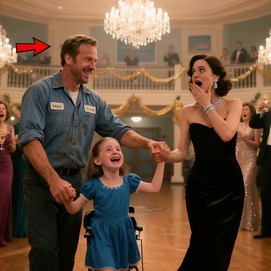 Amidst the crowded party, the single janitor stepped onto the dance floor with the disabled girl so she wouldn’t feel out of place, completely unaware that her mother, a powerful billionaire, was watching with a look of deep emotion