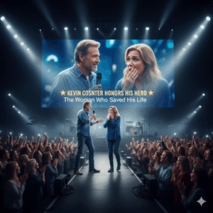 During a quiet Easter weekend in a small Montana town, Kevin Costner did something no one expected: he invited the woman who had saved his life onto the stage. For years, the details of their life-saving encounter had remained secret—but that night, the world finally learned the truth.