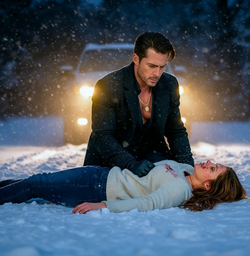I needed to stay warm, needed to move, needed to do something other than stand here bleeding into the snow like an idiot. I stumbled toward the highway, leaving dark footprints that filled in behind me within seconds. Each step felt heavier than the last. My vision swam, doubled, then cleared slightly before blurring again.