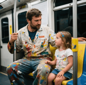 The subway was crowded, the hum of the train blending with the chatter of tired commuters. Among them sat Mike, a man covered in grime, white drywall dust caking his clothes and hands, just another worker heading home. But on his lap sat five-year-old Aaliyah, and to her, he wasn’t just a worker—he was the only hairstylist who mattered.