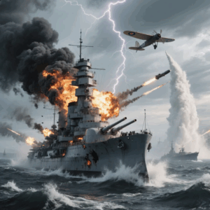 Lütjens orders to fire the secondary guns into the sea in front of the path of the planes,