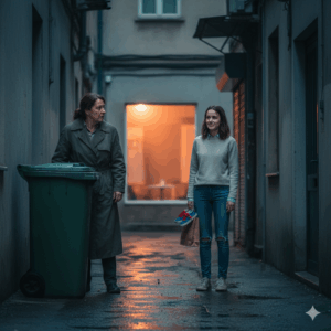 That night, as we walked back through the quiet streets, two strangers carrying a bag of found treasures, I realized something. Sometimes, family isn’t the people you’re born to. It’s the ones you find — hiding behind a dumpster on a Tuesday afternoon — who remind you that kindness still exists.