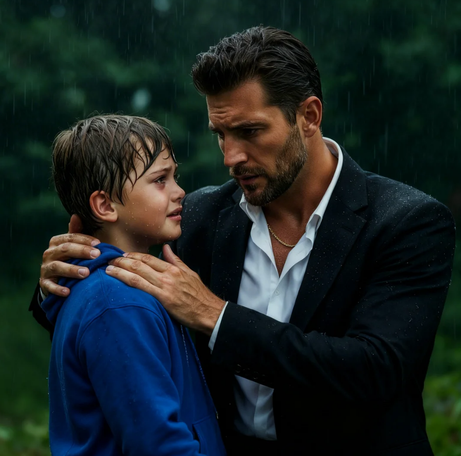 In the cold rain, the boy wept and pleaded for help at the mafia boss’s doorstep, saying his mother had been kidnapped by thugs, and the man’s changing expression foreshadowed an impending storm of revenge.