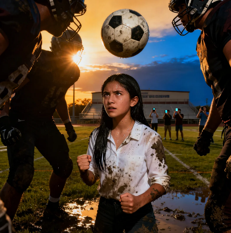 “Too weak to even sit in our bleachers.” Three massive football players formed a tight circle around the 17-year-old girl, their shadows blocking out the late afternoon Texas sun. Riley slowly pushed herself up from the muddy ground, dirt streaking her white button-down shirt, but her dark eyes held no trace of fear.