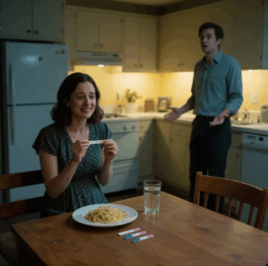 We sat there, surrounded by cold pasta and three positive pregnancy tests — our unlikely centerpiece.