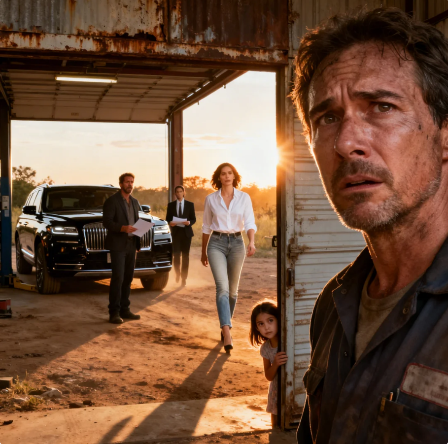 Two days later, just as Ben was trying to figure out how to pawn his late wife’s necklace for Emma’s medicine, a sleek black SUV rolled into the lot. Outstepped Riley, but this time she wasn’t in muddy boots. She wore a crisp white shirt, clean jeans, and beside her stood a sharply dressed man with a clipboard.