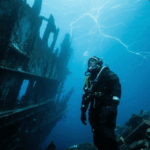 Britain was first in. The water was cold and thick, visibility almost zero. Slowly, he descended until his flashlight caught the faint reflection of glass and metal.