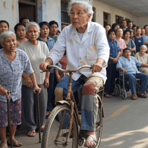 I pedaled my old, rattling bicycle to the community clinic, my medical bag swinging from the handlebars, my once-white shirt now stained with grease, my pants patched at the knee by my sister.