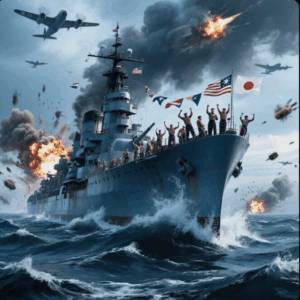 In desperation several Japanese make a turn for the destroyer, determined to take the ship down with them.