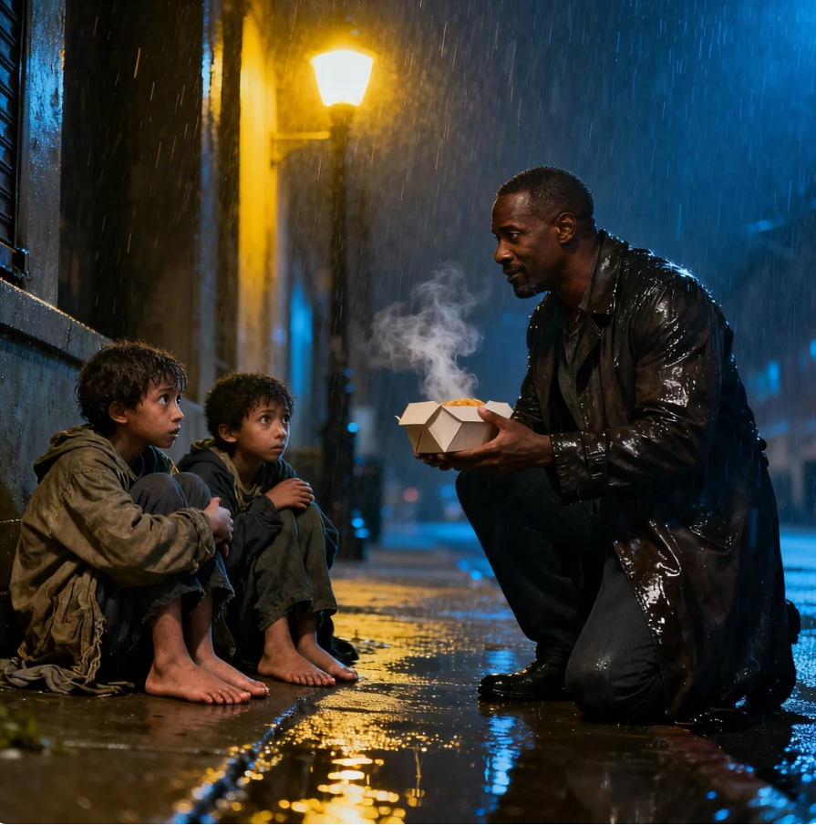 The rain came down in sheets, cold and punishing, as if the sky itself was crying for the forgotten souls below. Under a flickering street lamp on the corner of 47th and Maple, two children, barefoot, shivering, and cloaked in ragged clothes, huddled against the biting wind. Their faces were thin, their eyes wide and hollow, speaking volumes of the hunger, fear, and abandonment they’d known far too well for one so young.