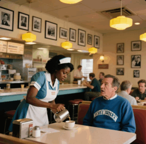 went undercover to his own diner and sat down at a corner table when a nervous black waitress approached with trembling