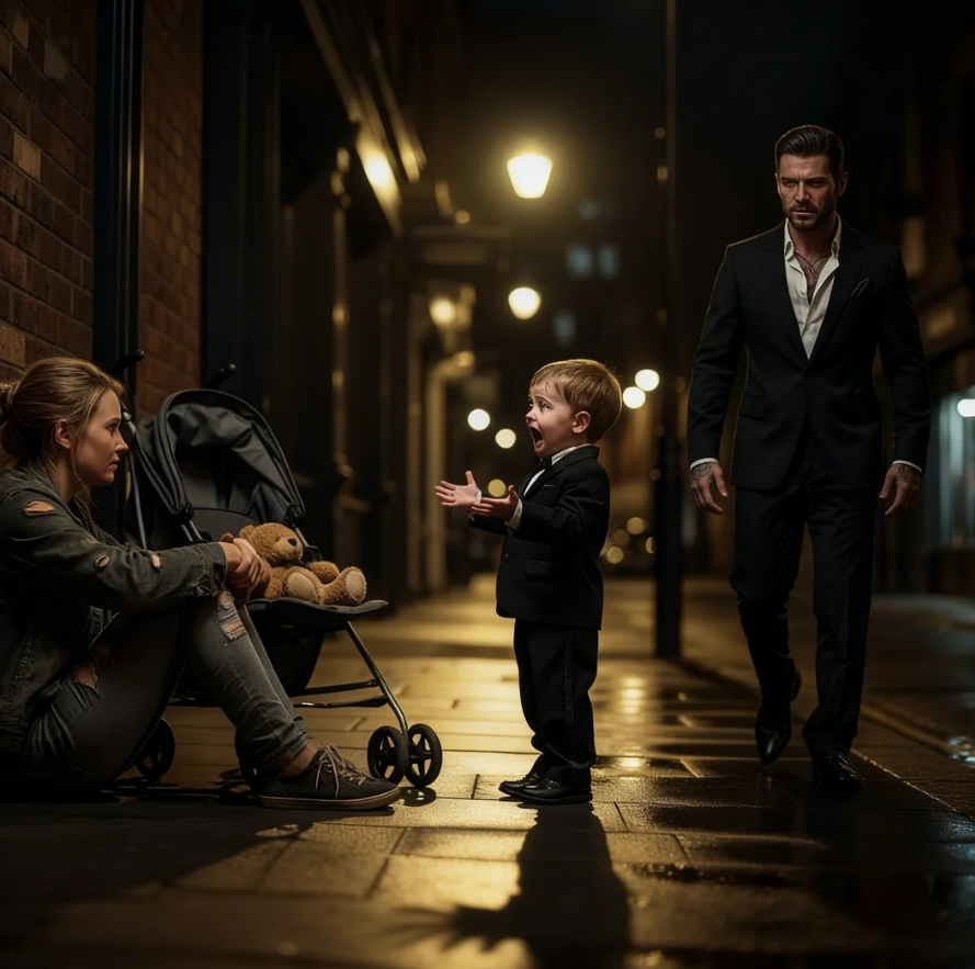 “Remember you used to make pancakes on Saturday and we’d watch cartoons together?” The beggar stared at the child with an expression that cycled through confusion, fear, and something deeper that Leopold recognized as the pain of reaching for memories that refused to surface. Her hand lifted slightly, fingers extending toward Milo’s face before stopping in midair, trembling with the effort of some internal battle.